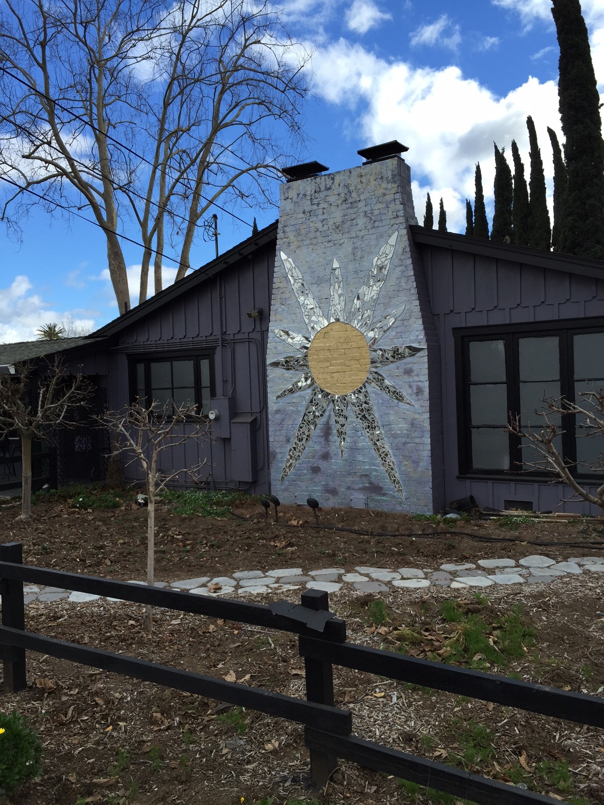 A little girl in polka-dot pants and her Mummy stand at the door of a lavender house. Yes, a lavender house, a single-floor conventional California ranch-style house, yet a whimsical and not-normal house, with a fat chimney where the beige has been painted over with more lavender, and also with an elaborate mosaic of tiny mirrors, reaching as high as the eaves and lovingly formed into the shape of a sun. There’s also a van outside, painted Easter-egg purple and emblazoned with the words BabyEarPiercing.com, Since 1987.